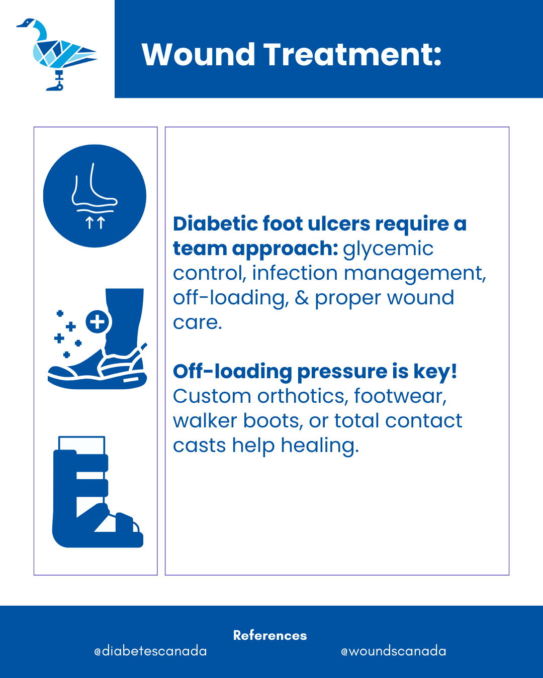 Diabetes Canada & Wounds Canada stress the importance of early intervention, proper wound care, and offloading devices to prevent amputations.